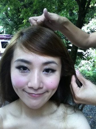 佳如老師幫他也綁了一個跟我是對稱造型的馬尾